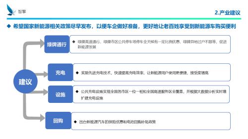 作为研发人员提一点产业建议,这几年是政府政策导向决定了产品开发的方向,我们希望国家的新能源相关政策尽早的发布,以便我们车企做好准备,更好的让老百姓享受到新能源购车的便利。有几个建议: