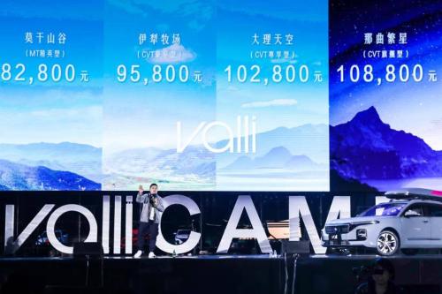 新车共推出1.5T 6MT莫干山谷/精英型、1.5T CVT伊犁牧场/豪华型、1.5T CVT大理天空/尊享型、1.5T CVT那曲繁星/旗舰型等四款车型,预售价格分别为8.28万元、9.58万元、10.28万元、10.88万元。作为最喜欢旅行车文化的中国汽车品牌,Valli想向年轻人输出的文化非常符合旅行车的调性,也非常的摇滚精神,永远年轻,永远在路上。