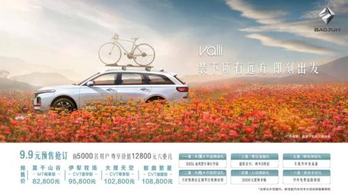 在预售发布现场,新宝骏还公布了预售优惠政策:自预售之日起,伊犁牧场、大理天空、那曲繁星三款配置车型可通过9.9元预售抢订,即日起下订的前5000名用户可享受价值12800元的六重礼遇,包括500L流线型车顶行李箱、五星级酒店定制零压收纳床垫、超低首付两年0利息、3000元置换补贴、车机终身免流量、首任车主终身免费道路救援等福利。