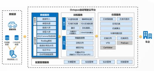 其中自动驾驶云服务就是广为人知的“华为八爪鱼(HUAWEI Octopus)”,与华为MDC计算平台、OS一起共同组成了华为车云协同的智能驾驶平台。该平台可提供数据、训练和仿真三大服务,包括自动化数据标注、场景挖掘、难例挖掘、算法训练和优化、仿真场景转换、云上仿真、自动驾驶车辆评测等,帮助车企和开发者快速开发自动驾驶应用,加速技术量产进程。