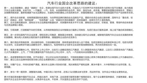 在我看来,汽车行业国企改革思路应该参考这十点: