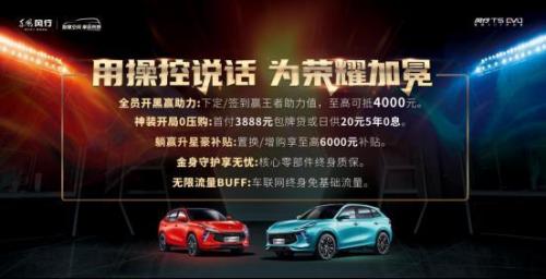 不仅如此,风行T5 EVO还以五重购车好礼回馈新世代用户,包括全员开黑赢助力:下定/签到赢王者助力值,至高可抵4000元;神装开局0压购:首付3888元包牌贷或日供20元5年0息;躺赢升星豪补贴:置换/增购享至高6000元补贴;金身守护享无忧:核心零部件终身质保;无限流量BUFF:车联网终身免基础流量。如此福利,还不快将风行T5 EVO加入到购物车中?