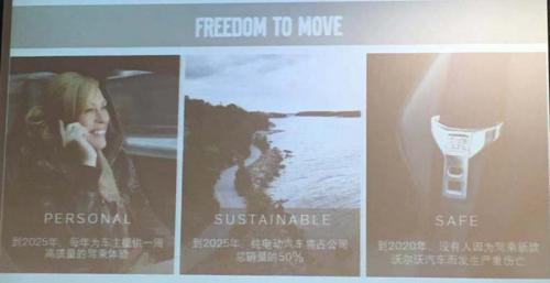 车艳华表示:“沃尔沃汽车始终致力于为消费者提供更便捷,更高效的出行解决方案,从一家纯粹的汽车制造商转型成为全球性和多元化的出行服务商,并以个性化的、可持续的、安全的方式实现未来愿景:到2020年,没有人因为驾乘新款沃尔沃汽车而发生严重伤亡;到2025年,每年为车主提供一周高质量的驾乘体验,同时纯电动汽车占公司总销量的50%。”