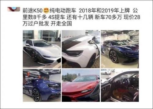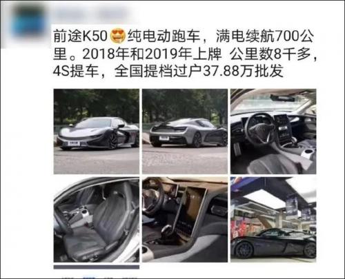 而销售数据显示,截止去年上半年前途K50累计上牌量为131辆。到今年2月,有网友在朋友圈发布前途K50准新车抛售消息,跑了8000多公里,价格缩水一半有余。