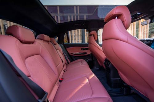 有人可能会担心,轿跑SUV由于车顶的溜背造型,会造成车内空间的缩水,不过在这点上,蔚来也做出了改进,将全景天窗改成了蔚来EC6的一体化穹顶式玻璃车顶,在整体空间上去除了压抑感。