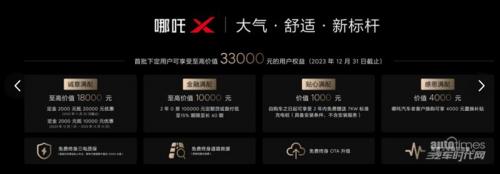 哪吒X的官方指导价为12.68万元-14.68万元,还为首批下定用户推出至高价值33000元的满配用户权益,11月底前下定,2000元定金最高可抵20000元,12月份,定金两千元抵一万元优惠,合算下来,最低10.88万元即可入手。此外,还有金融满配权益、贴心满配权益、感恩满配权益,以及诚意满满的服务承诺,质价比秒杀AION Y Plus、比亚迪元Plus等一众车型,是真正的“大气*舒适*新标杆”。