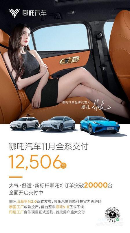 12月1日,哪吒汽车11月销量出炉。11月,哪吒汽车全系交付12506台,“大气*舒适*新标杆”哪吒X全面开启交付,订单突破20000台。截至2023年11月底,哪吒汽车累计交付370411台。