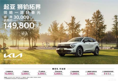 作为“全球都市SUV鼻祖”,起亚狮铂拓界历经三十一载品质传承、五代车型革新,更凭借时尚设计、出色驾控、丰富配置等优势备受用户青睐。消费者购买狮铂拓界可享15,000元购置税补贴、5,000元保险补贴、5,000元油费补贴、5,000元购车金补贴,上述补贴等同于购车价格直降30,000元,直购价仅149,800元起!同时购车用户还可享至高11,000元金融贴息、5年5次基础保养材料免费等专享权益,置换用户还可额外追享3,000元置换补贴。