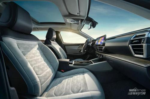 打开车门,现代主义极简内饰风格,个性化撞色,全新月见灰风格真皮+CAC领先舒适座椅,营造出如起居室般的宁静、舒缓的座舱氛围。