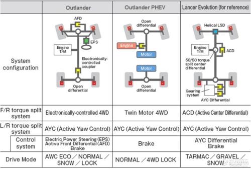 话说回来,其实三菱在那些年能够闪耀赛场和市场的原因,其实要得益于先进的研发技术,最为人知的就是三菱的四驱技术,首先就是用在EVO上面的S-AWC技术,正是有了这项技术的加成,EVO才能在WRC的赛场上所向披靡,这套四驱系统由AYC、ACD、ASC、ABS共同组成超级全轮控制系统,其中起到决定性作用的则是AYC和ACD,ACD是主动中央差速器,其作用就是通过一个限滑差速器控制着前后轮动力输出,主动中央差速器能适时控制差速器打滑的力量,在加速制动时能够保持稳定,过弯时响应更迅速,并且还能够客服非铺装路面所带来的阻力。AYC是主动偏转控制系统,在第四代EVO上就已经有他的身影了, AYC可以使两后轮扭矩输出不同,按实际所需要的扭矩输出,满足了车身对偏转控制的需求。