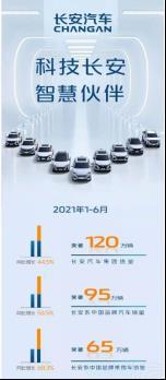 在竞争激烈的乘用车市场,长安系中国品牌乘用车1—6月累计销量达到659598辆,半年累计销量突破65万辆,且实现了68.3%的同比增长。