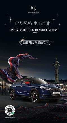 来自巴黎的豪华汽车品牌DS宣布旗下纯电DS 3 x Ines de la Fressange限量款开启预售。该款车型是DS汽车与法国时尚品牌Ines de la Fressange联名推出的限量款,在中国仅限量发售5台,并即将在UCCA Lab联合中国妇女发展基金会、上海时装周呈现的【非遗时尚实验室】正式上市。同时,DS发起了【DS 3时尚品鉴官】招募计划,面向全国寻觅最懂DS 3的那个TA,一起揭秘DS独有的设计语言,体验为期三天的魔都奇妙之旅,亲临Styling整车造型部门,去上海UCCA Edge当代艺术馆领略魔都文艺之夜,与麦子老师一起体验最正宗的法式文化,在上海新天地欣赏非遗技艺…