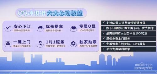 基于对用户价值体系的构建,奇瑞iCar生态同步启动了奇瑞QQ冰淇淋小订活动。即日起登录奇瑞新能源旗舰店、天猫汽车超市或者奇瑞iCar生态小程序,仅需支付500元订金,即可享受天猫60天无忧购、抢鲜排号提车、奇瑞iCar生态Q豆礼等6大用户权益。9月25号晚5点、8点,抖音、天猫汽车直播间“QQ冰淇淋&大咖直播带货节”快乐开启!奇瑞iCar生态营销公司总经理王磊将以直播的形式,联合著名主持人汪聪、知名车评人吴佩直播“带货”,介绍小订活动的相关权益,并为参与互动的网友带来iPhone13、iPad pro等丰厚的奖品。