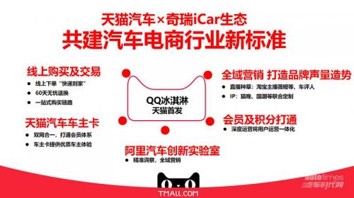 对于用户而言,奇瑞iCar生态通过基于天猫汽车的精细化运营,能最大程度解决用户对于产品价格、交易时间、区域限制等诸多痛点,通过对线上直销通路,供应链的数字化升级,让消费价格更透明、消费渠道更流畅、交易过程更高效,使品牌全场景营销实现从概念到实际的根本性转变,让每一位奇瑞iCar生态用户都能拥有“C位”的消费体验。值得一提的是,未来奇瑞iCar生态用户,不光能够优享品牌端带来的各项购车权益,而且还能兼备天猫汽车提供的60天无忧退换、天猫汽车车主卡等各项权益。