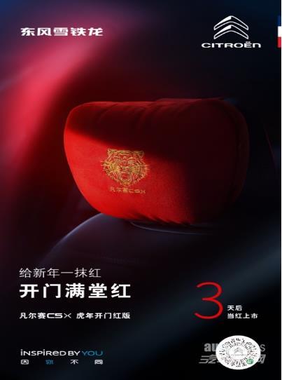 凡事牛气不减,虎虎生威;凡事风生水起,如虎添翼;凡事万象更新,虎跃龙腾。带着对新春的美好期待,东风雪铁龙凡尔赛C5 X以最热情、活跃的姿态迎接新的开始。据悉,1月17日,凡尔赛C5 X虎年开门红版将带着和客户共创的“虎标”、头枕、轮毂装饰件正式上市,仅限量1000台,与大家一起过个与众不同的凡事新春。