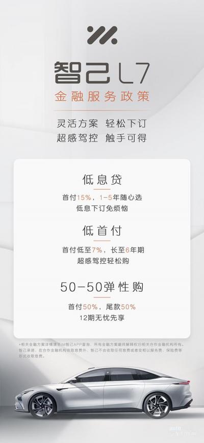 全网超低首付。智己汽车给出首付低至7%的购车金融方案,以智己L7天使轮版(40.88万)为例试算,首付不足3万,想入手时就入手。“低息贷”金融方案的首付则低至15%,12期至60期超长贷款期限,让用户购车无忧。