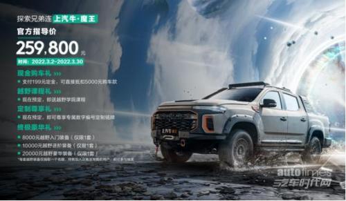 心之所向,路之所往,不如听从远方的召唤,以越野之名,一同开启探索地球新征程!3月2日,上汽大通MAXUS首款皮卡房车探索家T90纵横于上汽大通MAXUS溧阳房车基地震撼上市,新车预售价格区间为39.88万元-42.88万元;同时,与用户共创定制而来的上汽大通MAXUS越野“双子星”D90 Pro亚马逊版与上汽牛*魔王同步公布售价,价格分别为30.98万元、25.98万元。自此,从房车、SUV到皮卡,上汽大通MAXUS为越野汽车市场树立全新格局的同时,为越野发烧友们打造硬核“探索兄弟连”,实力“化身”越野最佳拍档,助你未来自由飞驰,纵横无疆。