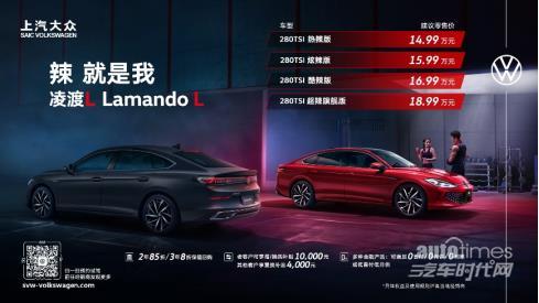 3月31日,上汽大众辣感美学数字轿跑凌渡L上市,建议零售价14.99万元-18.99万元。即日起购买凌渡L,可享2年85折/3年8折保值回购、老客户增/换购补贴10000元、其他客户置换补贴4000元,及多种金融政策(具体权益及使用规则详询当地经销商)。凌渡L以创新变革之姿重塑运动基因,以数字科技打造潮酷时尚空间,以酣畅动力成就快意驰骋,为追求个性的Z世代青年带来潮流先锋之选。
