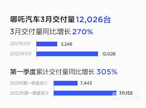 2022年第一季度,哪吒汽车累计交付30152台,同比增长305%;1-2月销量排名每月晋级,1月收获造车新势力季军,2月跻身造车新势力亚军。哪吒汽车在产品迭代、服务布局、用户运营、智能技术研发、全球化战略等方面接连取得突破,推动销量同比大增,品牌影响力同步攀升。