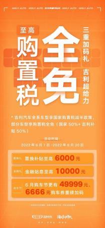 6月1日,吉利六月购车节全面启动,超强活动力度如期而至。据了解,活动期间吉利全系享受购置税减半政策、部分车型购置税全免,为广大意向用户带来购车福音。除此之外,吉利汽车APP、抖音直播间、京东/天猫吉利汽车官方旗舰店、吉利福利小程序及各大汽车媒体同步上线购车节限时活动,49999元购车券、6000元加油券、限时红包雨、秒杀特价车、3年10万0息等重磅福利放送,更是诚意满满!同时,吉利还将携手乐刻健身、全棉时代等众多品牌打造更有趣、有品质的轻潮生活圈,一键解锁趣玩生活。