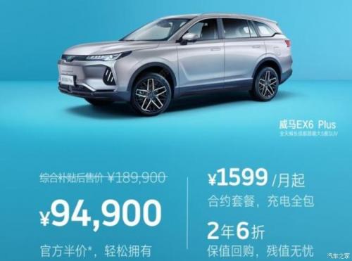 威马汽车 | 2年6折裸车价回购(不含电池) | EX6plus400轻享版 | 购车时开通6666-9666元出行服务,且下一辆车置换威马车型 | 21年1月-21年3月 |