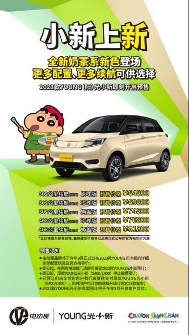 2023款YOUNG(阳)光小新车型系列与预售价格: