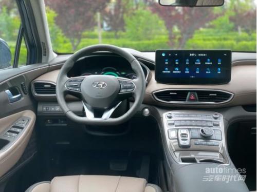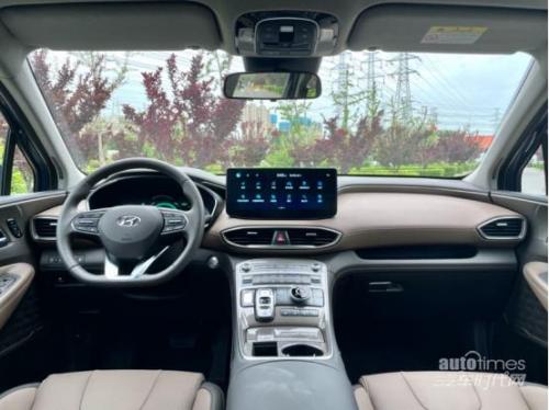 内饰方面,第四代胜达2023款最为显著的变化,就是采用了与海外版车型同步的上下双层中控台设计。其中上层为主控键区、便利储物槽、翻盖设计中央扶手箱;下层为中空储物空间,提升车内空间利用率,储物能力大幅提升。同时,中控屏尺寸由10.25英寸升级至12.3英寸。