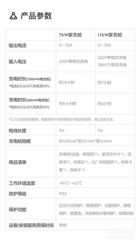 此次上新的11kW智能家充桩支持即插即充、自由操控、远程升级、智能自检、无感启动等多项智能化功能,可与5位亲友共享,整机防护等级达到IP55,可有效防尘防雨,配备过压/欠压保护、短路保护、过载保护、漏电保护、防雷击、充电联机中断保护、故障自检等多重防护设计,并具备完善的信息安全保障,从硬件端到软件端,全方位保证用户安心无忧地在家充电。