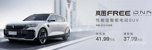 岚图FREE DNA为岚图汽车与个性化定制品牌创纪DNA联合打造,增程版售价37.99万元,纯电版售价41.99万元,限量3000台。