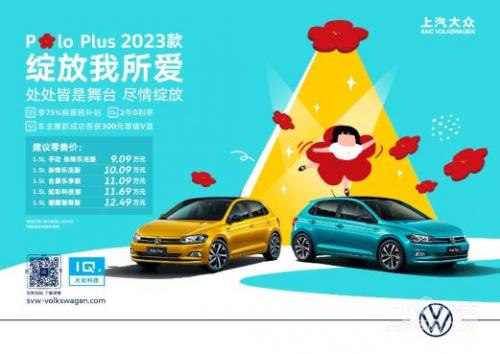 Polo Plus 2023款焕新推出5种车身色彩,全系升级8英寸数字液晶仪表,IQ.智慧车联功能也全面更新,带来更多彩、更智能的城市两厢车座驾,让消费者尽情绽放对生活的热爱。