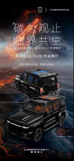 11月17日,由坦克品牌与CYBERSPACE(超境)共创的全新量产车型CYBERKNIGHT赛博骑士亮相,11月18日下午3点开启预订。限量7000台,首批预售5000台,其中耀斑橙3500台,脉冲蓝3500台。官方暂未公布售价,根据官方公布的产品核心卖点,以及官方视频中展露的碳纤维使用范围,预测定价35万元左右。