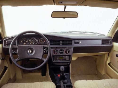 奔驰190系列的内饰符合当时入门豪华车的工艺及用料水准,当然还有许多在当时领先的配置。空调、磁带收音机等舒适性装备悉数到场,仪表盘提供了机油压力、油量、水温、转速、时速等全面的讯息显示,以及每一台奔驰必备的时钟(位于转速表下方)。高配车型还提供电动车窗、电动座椅调节等配置,手头非常富裕的用户还可选装自动空调和多卡带立体声音响系统等。