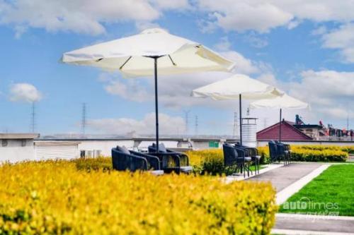作为全球首家获得LEED最高级别认证的保时捷中心,海宁保时捷中心在能源、用水、材料等多个方面遵循节能环保的设计与建造原则,以实现绿色建筑目标。例如:屋顶安装的太阳能光伏系统,在满足中心用电的同时,还可以在用电低谷期向国家电网反向输电;使用的地源热泵系统,效率相比常规保时捷中心提高约30%;雨水循环系统可将雨水以及生活用水进行有效收集和利用,每年可有效减少约38%的用水量;更值得一提的是,其建筑材料也遵循着环境友好原则,其中高反射材料的使用有效减弱了热岛效应,降低建筑外立面及路面温度2至3摄氏度,亦减少约40%的照明需求,而设立的空中花园与垂直绿化墙以自然之美抵消了光与热,减少空调能耗的同时,也提升了客户体验。