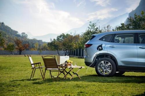对于喜欢户外露营的朋友,哈弗H6插电混动的V2L对外放电技术能让车辆立刻化身充电宝,其最大载电能力为3.3kW,可轻松驱动电磁炉、电烤箱等大功率设备,让户外用电更加便捷,尽享插混乐趣。