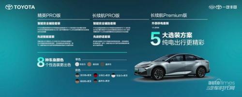 在此基础上,一汽丰田bZ3还带来了五大选装方案,供用户随心选择,打造更具个性的专属座驾。