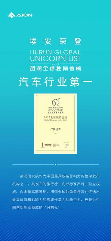 近日,胡润研究院发布了《2023全球独角兽榜》,列出了全球成立于2000年之后,价值10亿美元以上的非上市公司,其中埃安位列汽车行业第一位。