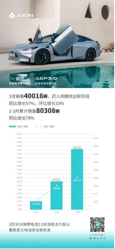 事实上,埃安这些年在研发、智造、产业链、营销服务模式和组织文化等领域,都进行了创新改革并取得较大进展,成为国内高质量发展企业的代表。近4年以年均超120%的复合增长率,稳居行业前三。今年延续强势,埃安3月销量再破新高,达到40016辆,同环比双增长,迈入规模效应新阶段。