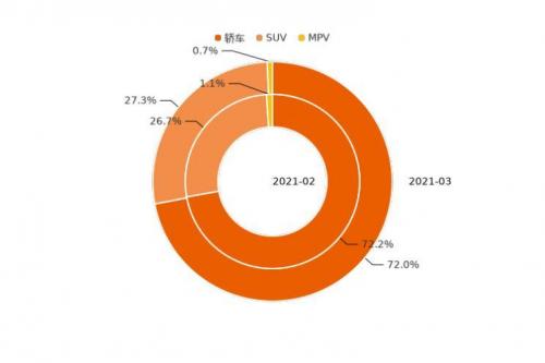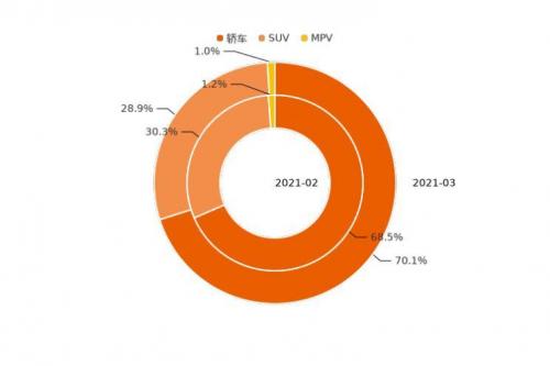 3月,新能源车中轿车、SUV、MPV用户购车意向占比分别为69.9%、29.1%、1.0%。轿车用户意向占比相较上月增加1.4个百分点。SUV用户购车意向自年初有短暂上浮后,仍旧呈下滑态势,环比降低1.1个百分点。MPV用户意向占比3月环比降低0.3个百分点,意向占比仍较低。整体来看,轿车市场热度仍旧呈上升态势,且居高不下。