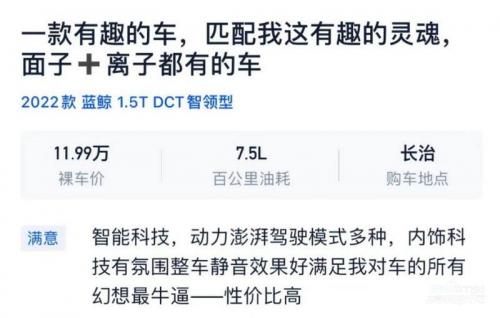 “智能科技,动力澎湃驾驶模式多种,内饰科技有氛围整车静音效果好,满足我对车的所有幻想,最牛逼——性价比高!”