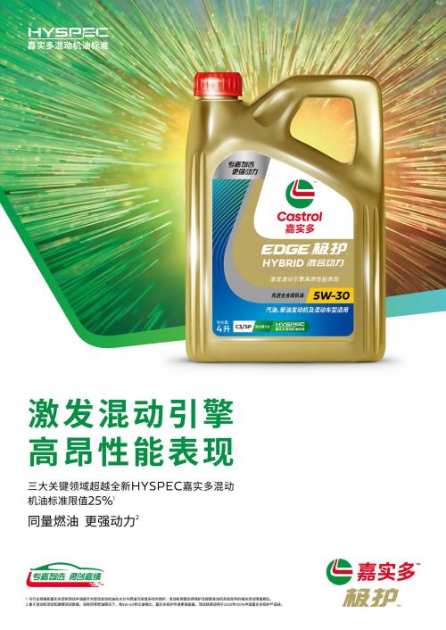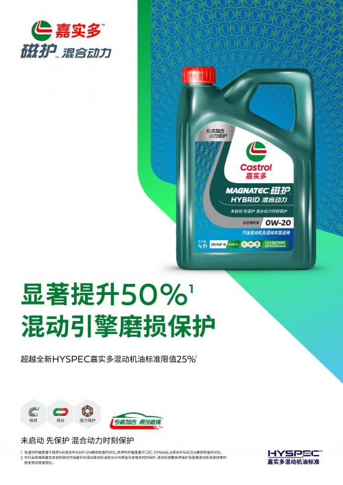 基于全新HYSPEC嘉实多混动机油标准,嘉实多重磅推出全新混合动力产品线,专为混动车型需求所设计,三大关键领域提升卓越性能表现(针对水分与燃油污染增多的保护、发动机频繁启停保护、提升系统效率),超越HYSPEC限值25%【1】,且符合行业最新/最高标准。其中全新嘉实多极护混合动力新品更获得领先的整车制造商(OEM)的认证。