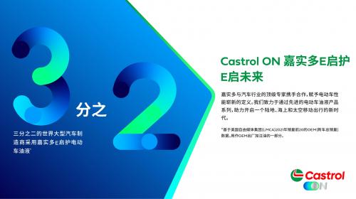 长期以来,嘉实多是奥迪、捷豹路虎、沃尔沃、大众汽车、福特等众多世界领先汽车厂商的合作伙伴和推荐品牌,并与它们共同开展技术研发,度身定制高品质的嘉实多专享润滑油产品,期待以更好的产品和服务来实现对广大中国消费者的承诺。同时,嘉实多致力于开拓增长市场以发展业务,在全球专注于拓展品牌服务和养护方案,提供市场领先的电动车油液产品。全球三分之二的主要汽车制造商都在使用Castrol ON嘉实多E启护系列产品【2】。
