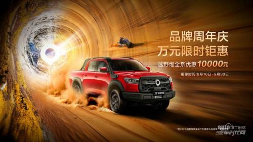 此次长城炮品牌周年庆——越野炮全系万元限时钜惠持续到9月30日,以最大化诚意回馈用户,再次展现长城炮笃行“以用户为中心”,携手用户畅享全场景皮卡车生活的满满诚意。