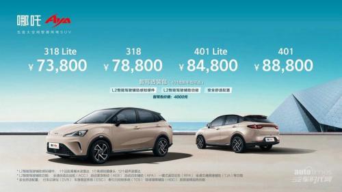 8月,“五座大空间智能纯电SUV”哪吒AYA上市,售价7.38-8.88万元。作为哪吒V的全新换代产品,哪吒AYA继承“冠军基因”,集超大空间、超长续航、超高颜值、超快加速、超强智能于一身,是品牌年轻化先锋车型。