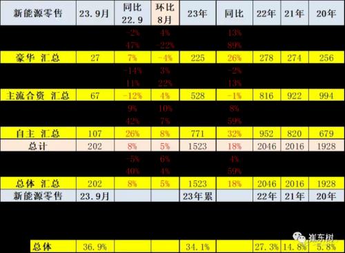 在渗透率方面,9月新能源车在国内市场零售渗透率为36.9%,其中自主品牌中的新能源车渗透率59.4%;豪华车中的新能源车渗透率24.0%;而主流合资品牌中的新能源车渗透率仅有6.2%,完全拖后腿,这也是合资品牌效率下滑的主要原因。