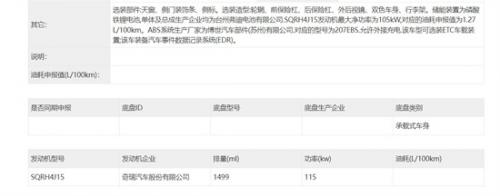 动力部分,根据工信部信息显示,新车将搭载型号为SQRH4J15的1.5T涡轮增压发动机混动系统,发动机的最大功率为115kW,并匹配磷酸铁锂电池。关于新车更多消息,车质网将持续关注及报道。
