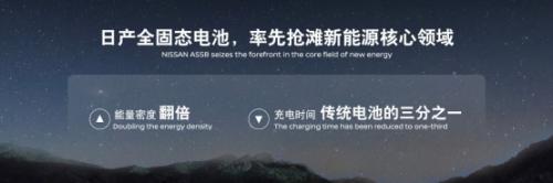 以Hyper之名,点燃激情,以技术为帆,让未来触手可及。站在长期主义者的技术经验之巅,日产迎来全固态电池技术的前瞻性突破,率先抢滩新能源汽车全新核心领域。作为纯电车普及的破局者,日产全固态电池相对于传统的锂离子电池具有显著优势。在能量密度和续航里程上,日产全固态电池几乎达到了现有电池的两倍,有效提升车辆续航里程;在充、放电性能上,充电时间缩短到传统电池的三分之一,助力缓解补能焦虑。