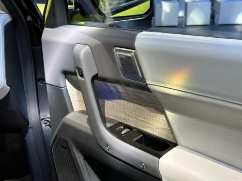 新车整体造型线条棱角分明,竖条灯带的形状也颇具视觉冲击力。车身侧面我们可以看到一条直线完整地从前大灯贯穿到尾灯,一气呵成,凸显了整体的协调感,而车门把手则采用了隐藏式设计,长宽高分别为4406/1910/1715mm,轴距为2715mm。来到车身尾部,风格依旧十分硬朗强健。整体采用撞色设计,纵向的尾灯设计风格与前大灯相统一,宽大的后保险杠则可以给予用户一定的安心感。