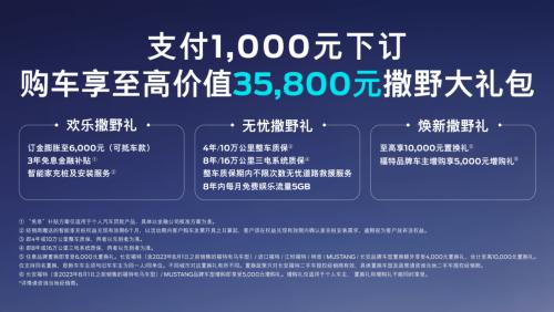 2024款福特电马推出时即附赠价值35800元的撒野大礼包,包含了多重优惠与赠品,用户仅需1000元定金即可享受此项优惠,这无疑极大提升了购车的性价比。