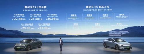 12月20日,星途星纪元ES正式上市,新车共推出五个版型车型,售价区间为22.58万元至33.98万元。同时,用户下定还可享受至高价值50000元的七大购车礼遇。
