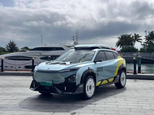 新车最吸睛的部分就是它的外观。据了解,这款车的设计灵感来自“太空电竞基地”,外形看起来像是穿越了太空复杂地形场景的竞速形态,同时还融入了太空基地用车和太空装备的未来感。机甲元素的大量使用,让整车看起来硬核又自由。
